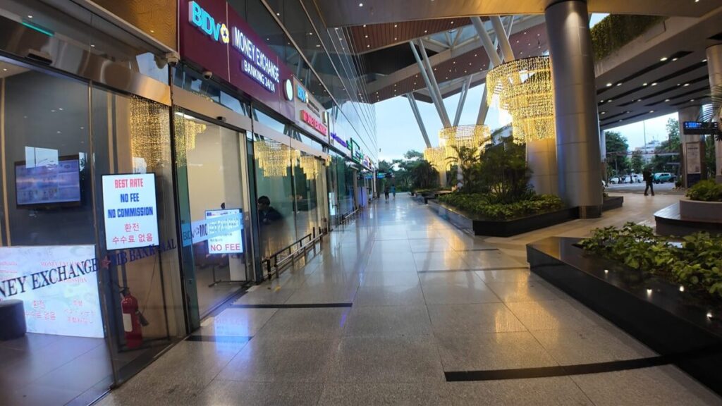 出口を出ると、ターミナルのビル側にATMや両替所、カフェなどが並びます。