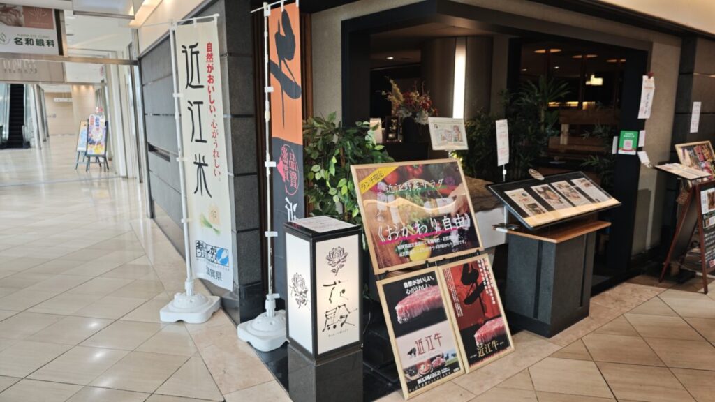 京阪モールホテル館6階に位置する「花殿 ka-den」は、A-4・A-5認定の最高級近江牛を一頭買いし、希少部位から王道部位まで多彩に提供する近江牛肉割烹店です。