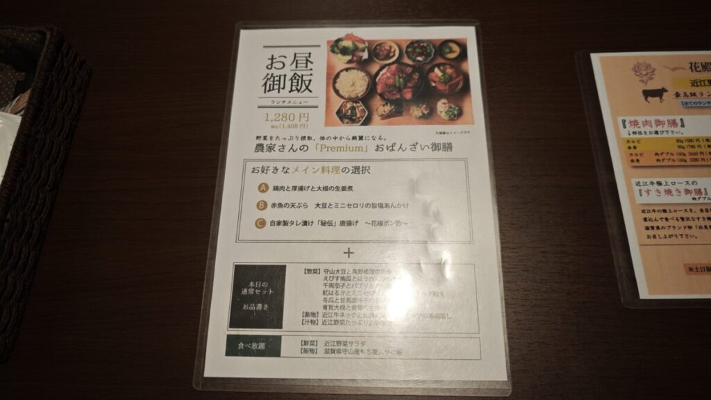 今回、同店を訪れた理由は、ランチの「お昼御飯」のメニューが非常にヘルシーで多彩な料理メニューに興味を持ったからでした。それでいて、1,408円と良心的な価格であったことも理由の一つです。
