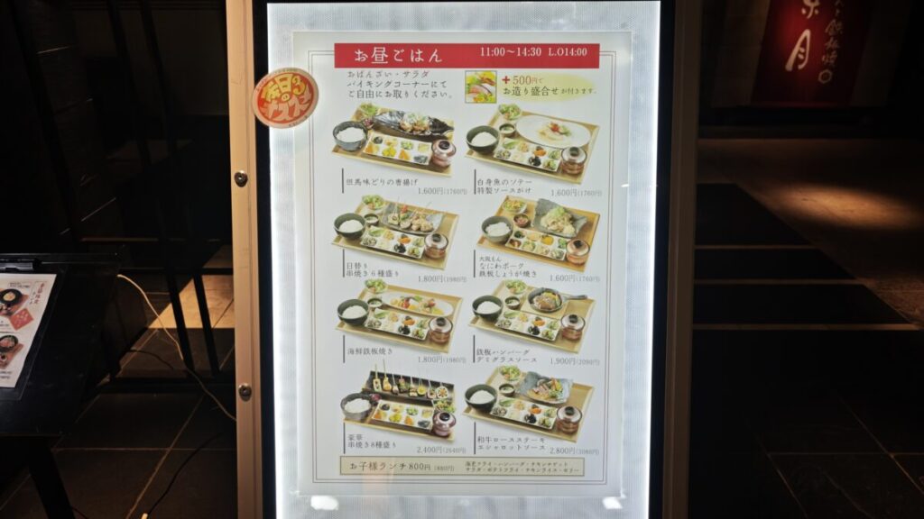 入口前にランチの定食が紹介されているので、事前に確認がしやすく入店しやすいお店です。