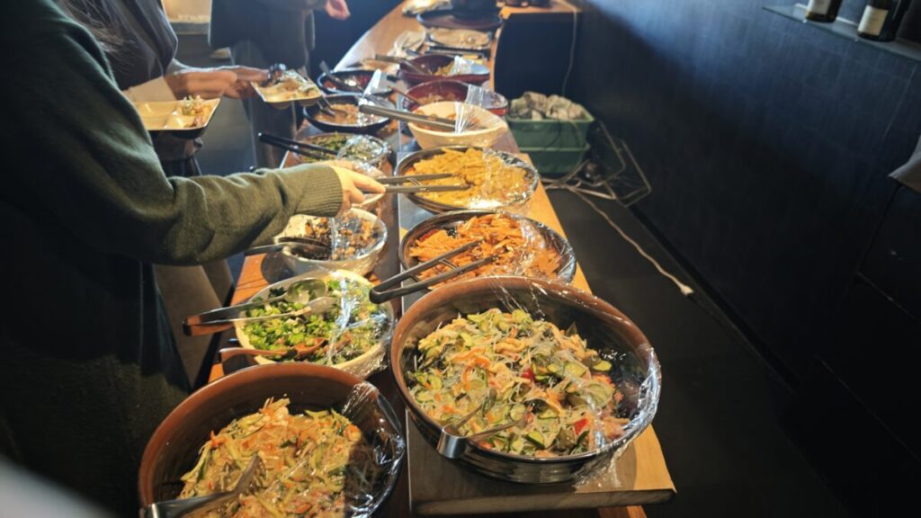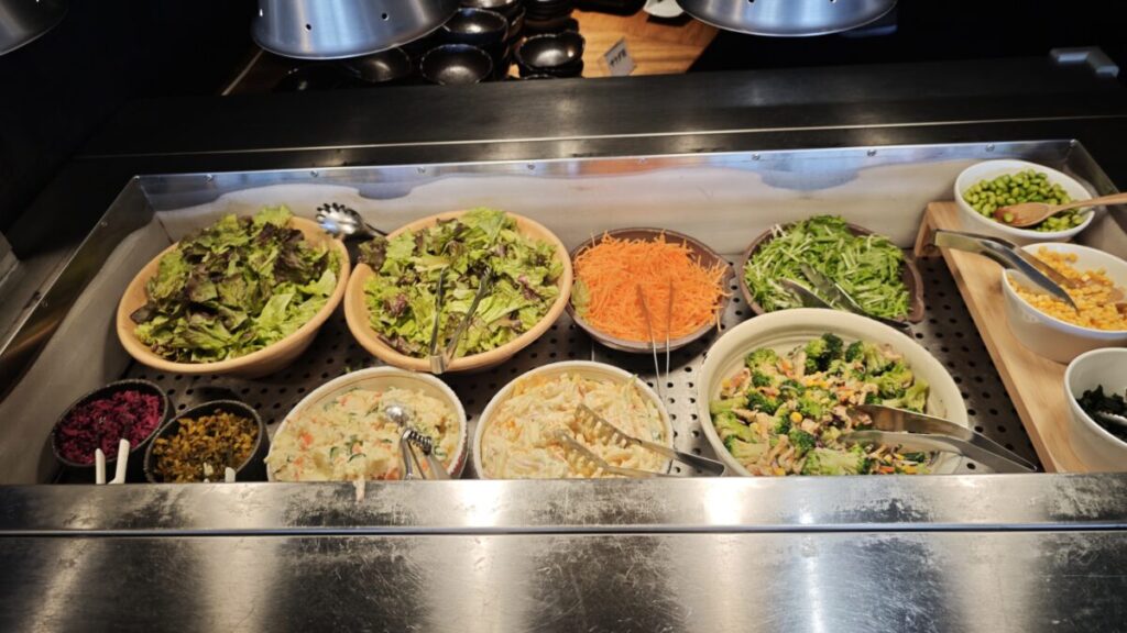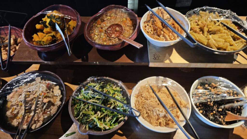 おばんざいコーナーとサラダバーは自由に取りに行くことができます。