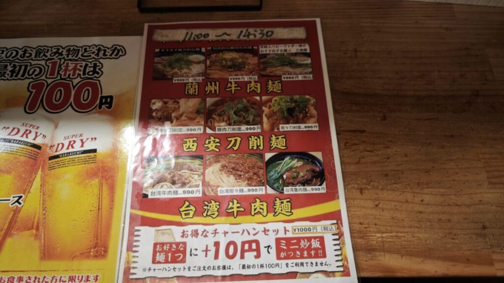ランチ時間は麺を注文すれば、10円プラスでミニチャーハンをセットにできます。
