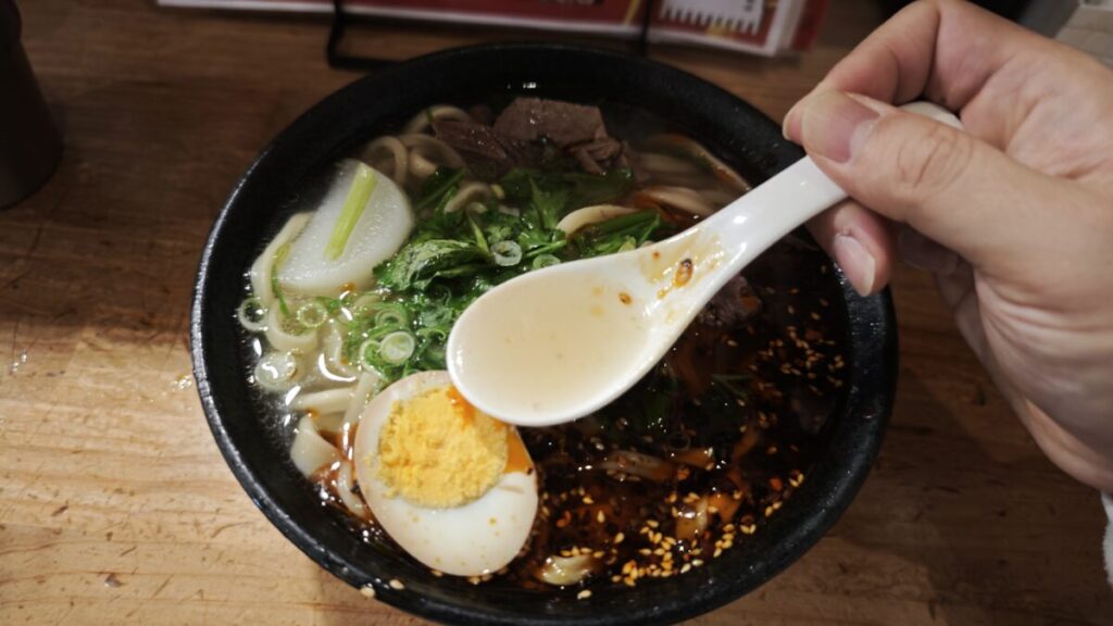 一度、蘭州牛肉麺は別の店で食べたことはありましたが、同じように透き通ったスープが特徴的でした。