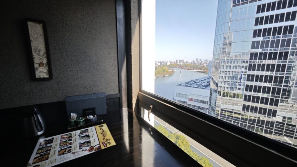 お店は大川を望む窓際席もあり、そちらを案内して頂くことができました。店内は結構広いので、リバービューになる席は少なそうです。どうしてもその席を希望する場合は、予約などで相談した方が良いと思います。