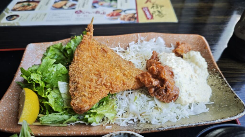 アジフライもボリュームがあり、チキン南蛮にはたっぷりのタルタルソースがかかっておりました。