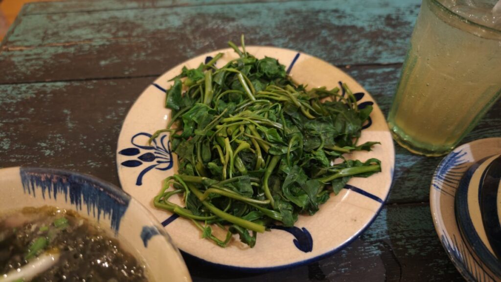 本当はガーリック炒めのような空心菜炒めが食べたかったのですが、間違えて「茹でた空心菜」を注文してしまいました。(笑)