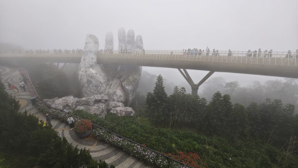 巨大な「神の手」が黄金の橋を支える光景で一躍有名になったバーナーヒルズは、標高約1,500メートルの高台に位置する、世界でも珍しい天空のテーマパークです。世界最長級のロープウェイで雲を抜けていく体験や、中世フランスを再現した街並みは、ベトナムにいることを忘れてしまうほどの別世界でした。