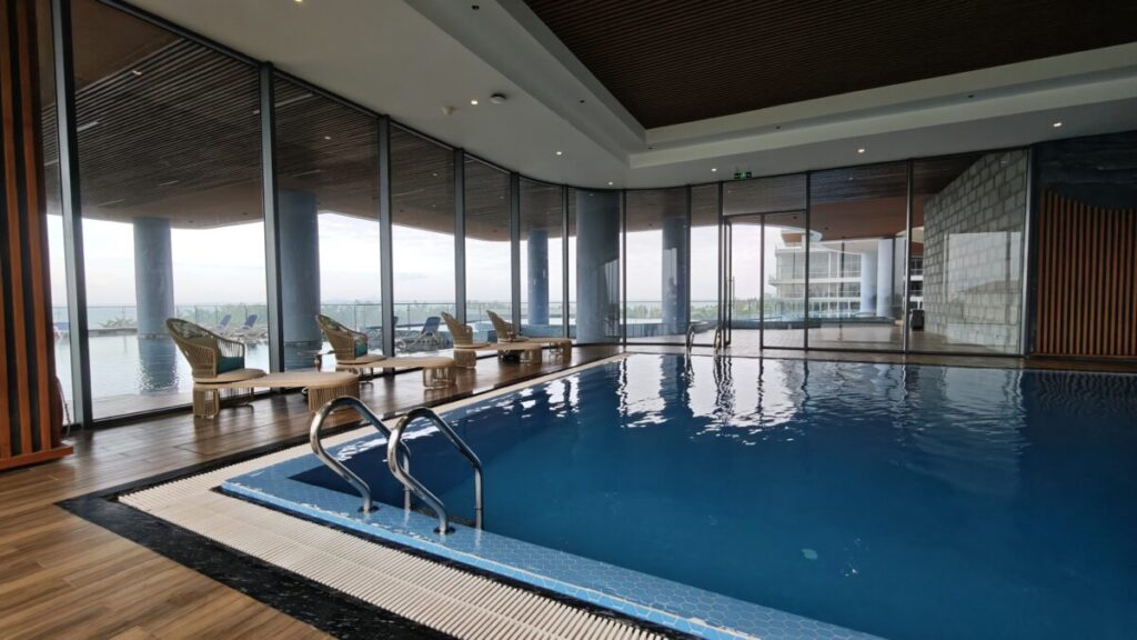 メインのプールはビーチ沿いですが、ホテル棟から直結した場所に屋内プールやフィットネスジムがありました。