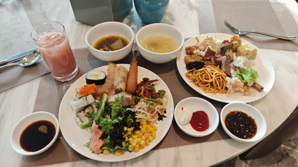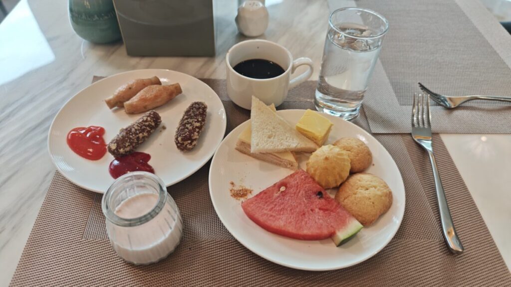 正直、メニューはそれほどでもなくフルーツとちょっとしたスイーツ、おつまみ程度でしたが、それでも無料で楽しめたのはありがたい限りでした。周りの飲食店も少ないことから優れたサービスだったと思います。