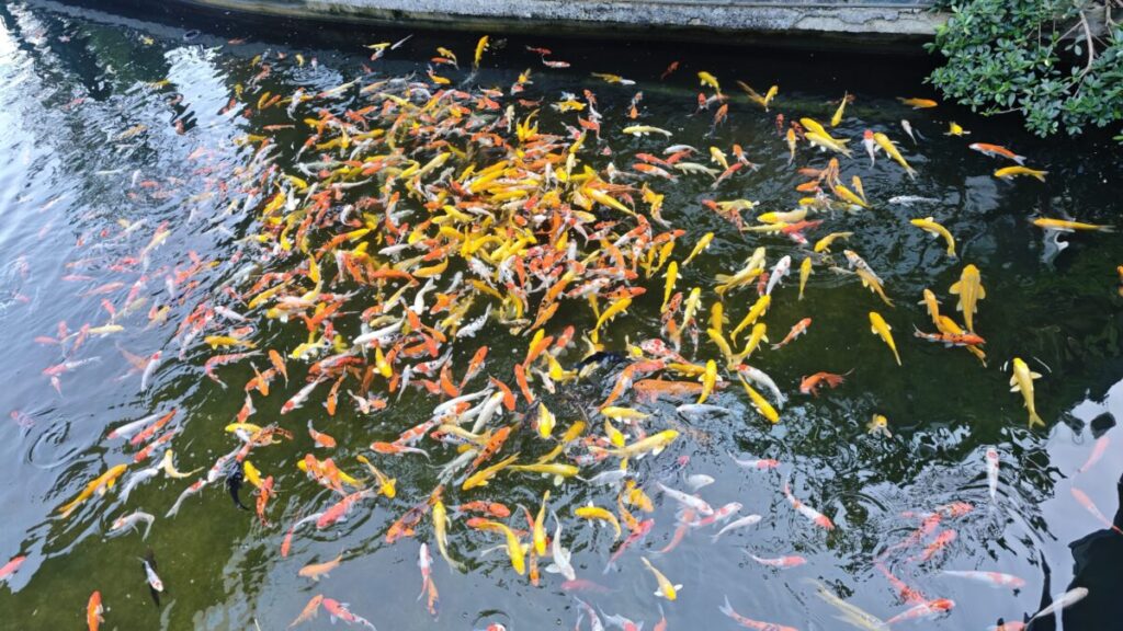 ホテル棟の近くでは鯉が泳ぐ庭園もあります。