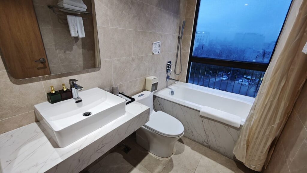 ありがたいのは、格安ホテルでありながら浴槽があることです。少し小さい浴槽ですが、旅の疲れをとるには最適です。