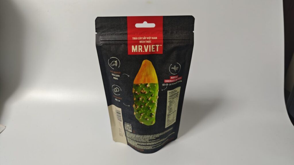 今回のベトナム旅行でスーパーマーケットを周った際に、この特徴的なメーカーのパッケージの商品でチョコレートコーティングのドライマンゴーを見つけました。