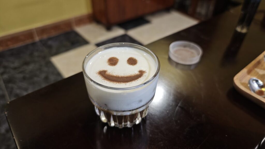 よくカフェであるココナッツコーヒーは、シャーベット状のフローズンココナッツと濃厚コーヒーをませたフローズンのようなコーヒーが良く販売されています。こちらで学んだものはあくまでコーヒーでした。